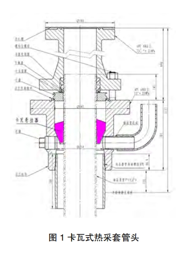 現場采用了卡瓦式熱采套管頭(圖 1)。卡瓦式熱采套管頭 TRZ 10 3/4”×7”-30,內通徑 254mm,安全懸掛能力≥900KN。其獨特設計在于頂端油層套管的上部預留了 0—500mm 的上升空間,這一巧妙的預留設計,使得在注汽時,即便油層套管柱受熱膨脹伸長上升,也不會造成井口裝置高度的變化。而且,該套管頭使用了可長期在 400℃高溫下實現長期密封的非橡膠材料,有效解決了井口密封難題,確保在高溫高壓環境下井口的密封性,為鉆井作業提供了可靠保障。