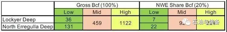 西北能源公司對Lockyer-North Erregulla Deep的Kingia和High Cliff Formation的預期天然氣資源(可采儲量)估計如下:
