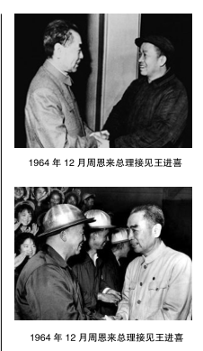 為了支持王進喜回大慶抓生產,周恩來總理在接見軍隊領導人和群眾代表是宣布:“王進喜在大會戰中立了大功,歷史清楚。今后王進喜的事情由大慶油田軍管會管,不準再批斗!”