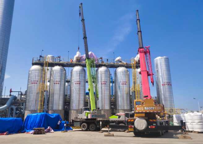 8月15日,由中國中化旗下企業西南院提供專有技術、全套設計及關鍵設備的陜煤集團榆林化學公司“煤炭分質利用制化工新材料示范項目”180萬噸/年乙二醇工程配套的特大型PSA制氫裝置基本完成吸附劑裝劑工作,具備開車條件,這也是目前全球在建最大的煤制氫PSA裝置。