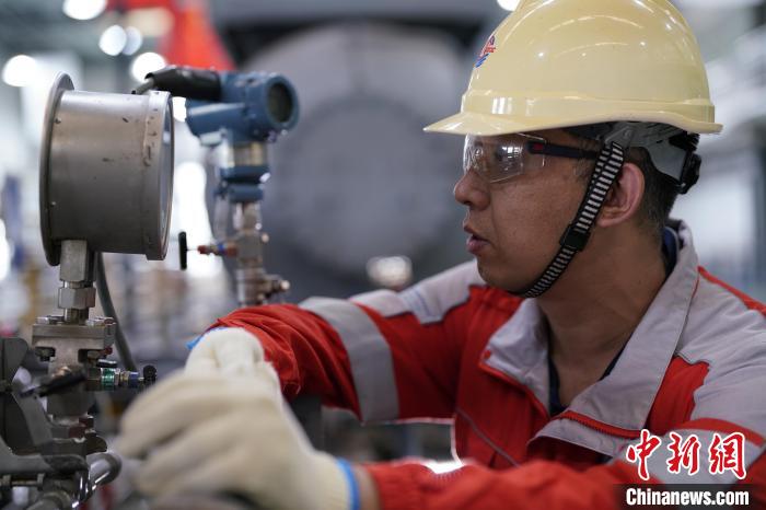 秦皇島32-6油田CEPI平臺總監(jiān)孫昊正在檢查設備。中國海油天津分公司供圖